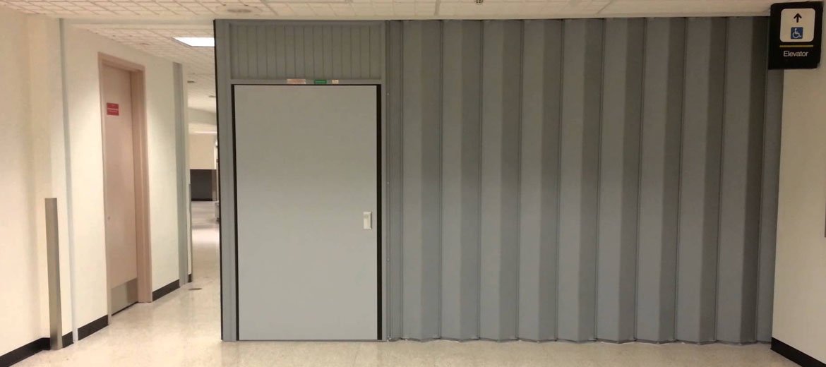 The doors are available with upto 3 hours fire rating.The doors are compliant with ADA requirement and offer design flexibility by allowing the design professional to visually open up large areas in fire walls that require egress. The doors are completely undetectable when in the stored fire ready position.